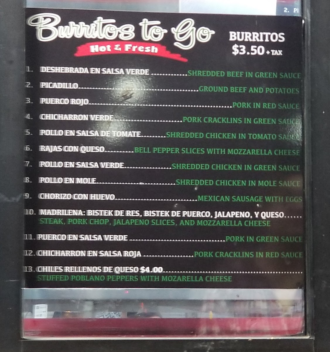 Burritos To Go Menu